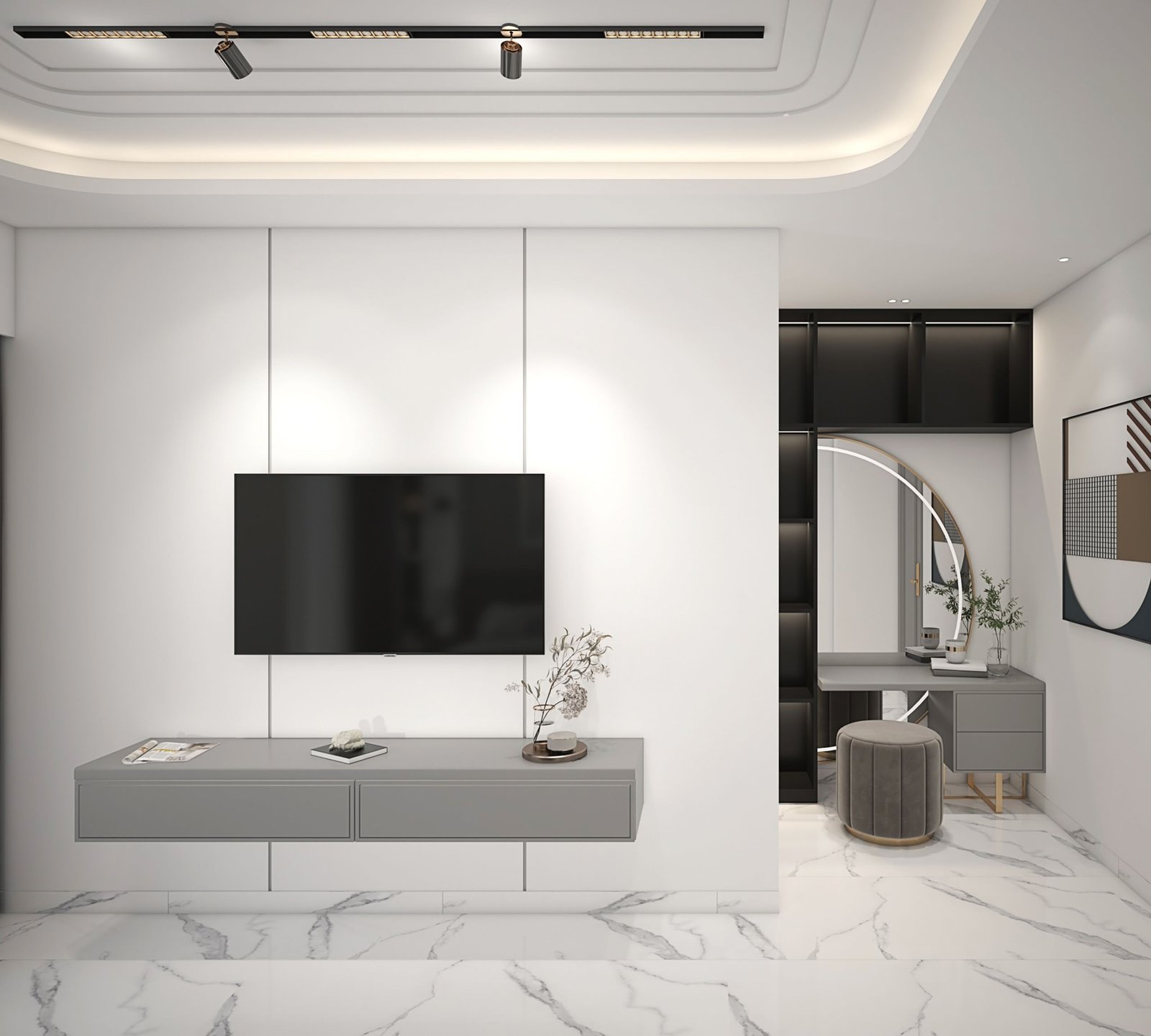 When you choose Md Interior Refined you choose a beautiful harmony of customisation, functionality, aesthetics, and a delightful experience! Finding something that matches your tastes and dreams 100% is a journey altogether, which one must have while getting their home interiors done. Md Interiors has the perfect diagnostic tools, the best visualisation methods and a team of experts, to curate each and every corner of your home. Have a look at this beautiful abode, with a refreshing cosy ambience, a splash of warm lights, and don’t miss out on the unique blend of different materials and textures! .