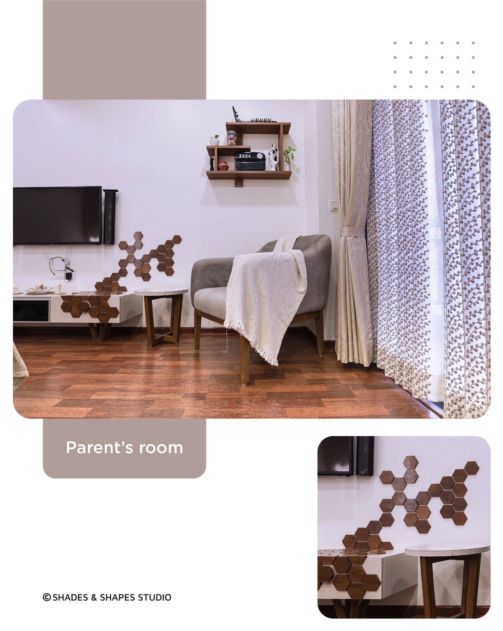 Services Provided Interior Design Areas Served Ahmedabad Category Interior Designers & Decorators Read More Back to Navigation 13 Projects Adani waterlily Antriksh Sankalp Iconic Shah Haveli Omnitech Binori Load Next 6 Projects Back to Navigation Reviews You could be the first review for Shades & Shapes Studio Select your rating Back to Navigation Business Details Business Name Shades & Shapes Studio Phone Number 081558 88999 Website shadesandshapes.studio/ Address 1102, Titanium Square, Thaltej Cross Roads Sarkhej – Gandhinagar Highway Near Acropolis mall, Thaltej Ahmedabad Gujarat 380054 Followers 5 Followers Follow Socials Back to Navigation Credentials 1 Houzz Award 1 Houzz Badge Back to Navigation 8 Ideabooks Decorations 2 ideas Living Room 17 ideas Our Kitchen Ideas 8 ideas Graceful Lobbies 2 ideas Time To Work From Home 🙂 1 idea Dining Room 2 ideas Load Next 2 Ideabooks