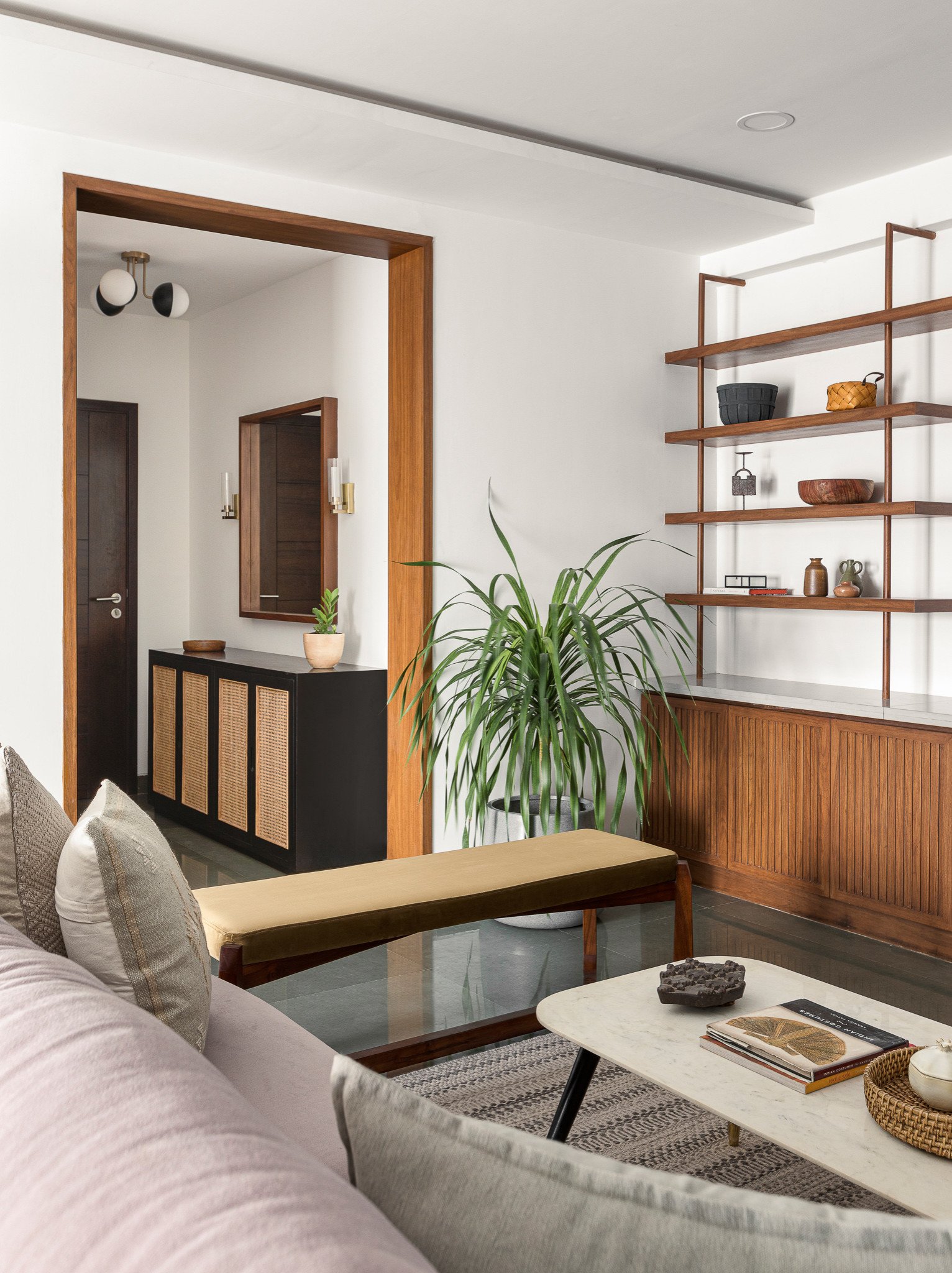 Sunita Yogesh Studio is a full-service interior design firm based out of Chennai, creating beautiful spaces by assisting clients with a wide range of challenges including, selection of interior details and finishes, and creating bespoke pieces of furniture, furnishings, decor. As the creative head at Sunita Yogesh Studio, Sunita has garnered clients and followers from around the country. She adds a bit of modern eclectic touch in all of her projects, but loves a good design challenge and opportunities to show off her ever-evolving style. No matter what the style she is asked to create by her clients, each space designed by Sunita feels cosy, unique with a lot of character. Today Sunita Yogesh Studio provides designs for everything from small scale residences to large commercial projects. Sunita and her team work with architects and contractors to bring the distinct visions seen in her work to life. Bright light-filled rooms, a bit of black and white, playing with different textiles, natural woven elements, earthy textures, with a lot of juxtaposition are the elements that define and can always distinguish a Sunita Yogesh Studio designed home.
